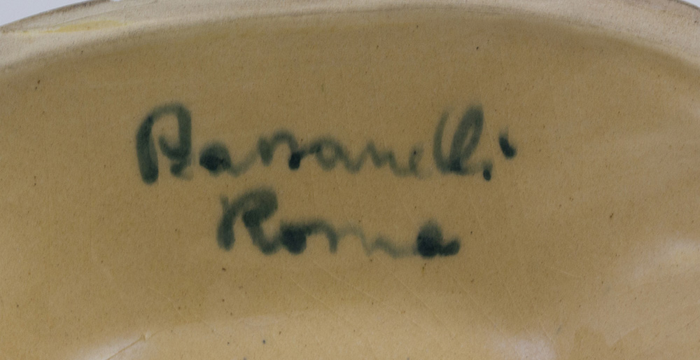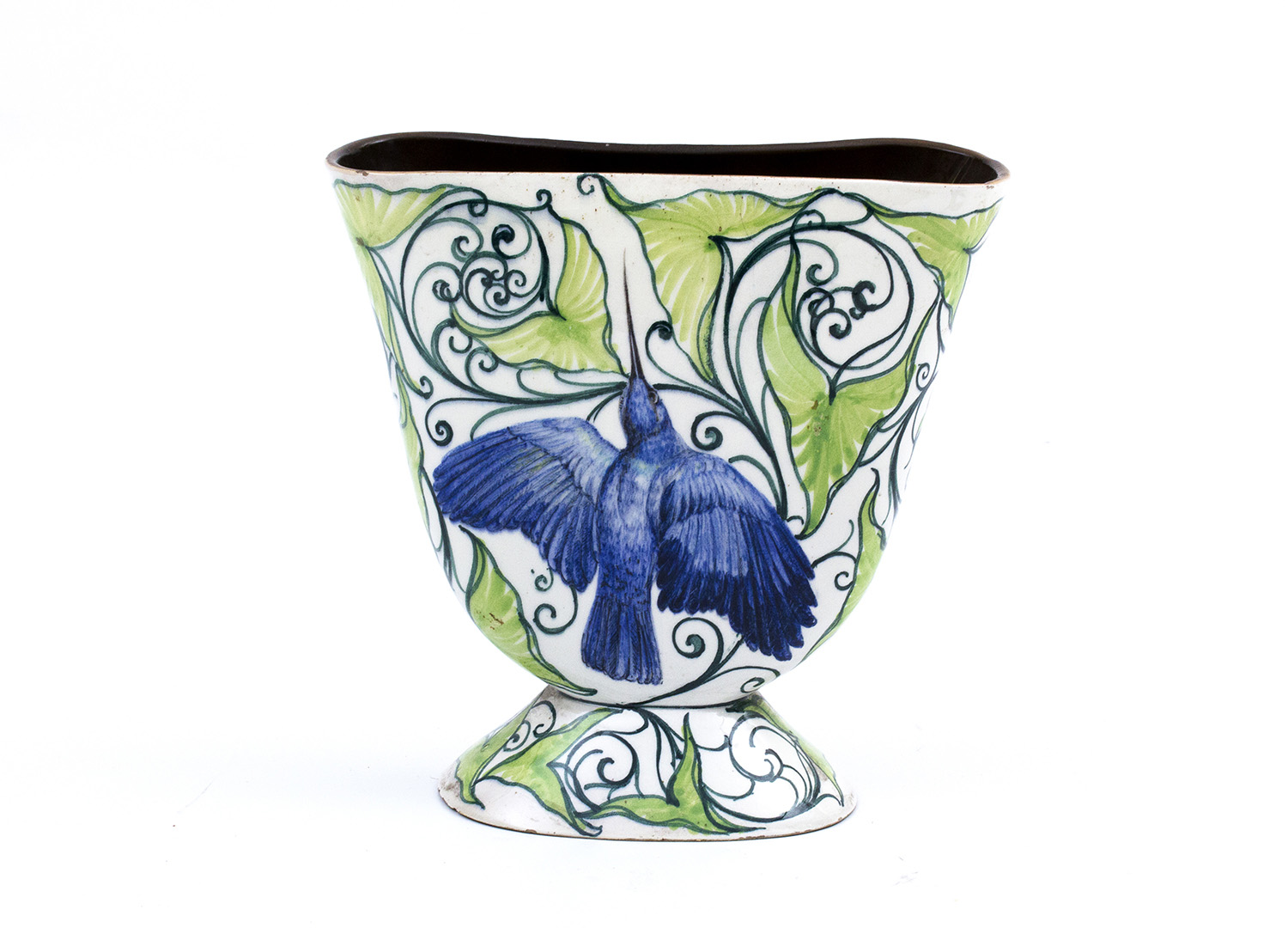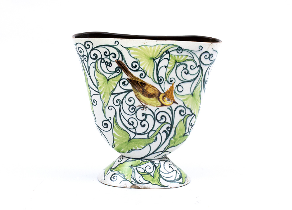RENATO BASSANELLI Vaso con uccelli, anni ’20 Terracotta dipinta in policromia e invetriata, h. 19 cm Firma e luogo sotto la base: Bassanelli Roma CONDITION REPORT Lieve scheggiatura alla base