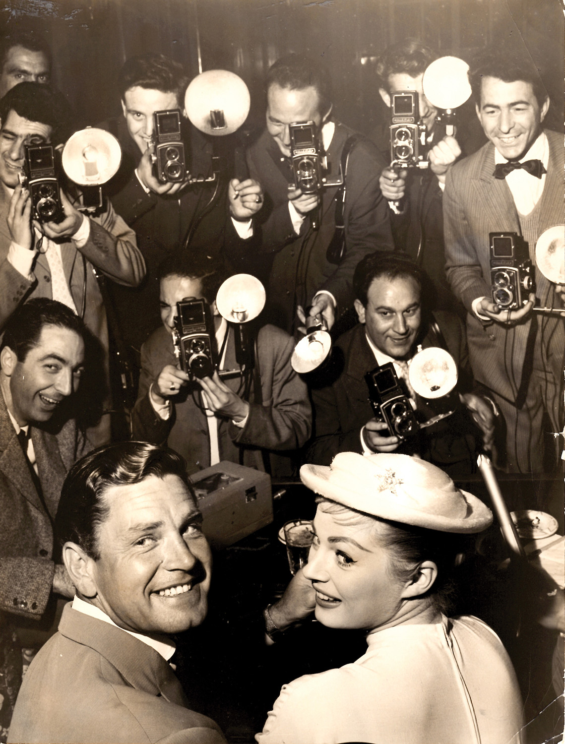 MASSIMO ASCANI Anthony Steel e Anita Ekberg davanti a un gruppo di fotografi, Roma 1958 Vintage, gelatina bromuro d’argento cm. 30x24 Paparazzi. Fotografie 1953-1964, a cura di P. Costantini, S. Fuso, S. Mescola e I. Zannier, Alinari 1988, pag. 24. Diego Mormorio, Tazio Secchiaroli, Dalla Dolce Vita ai miti del set, Motta 1998, pag. 23.