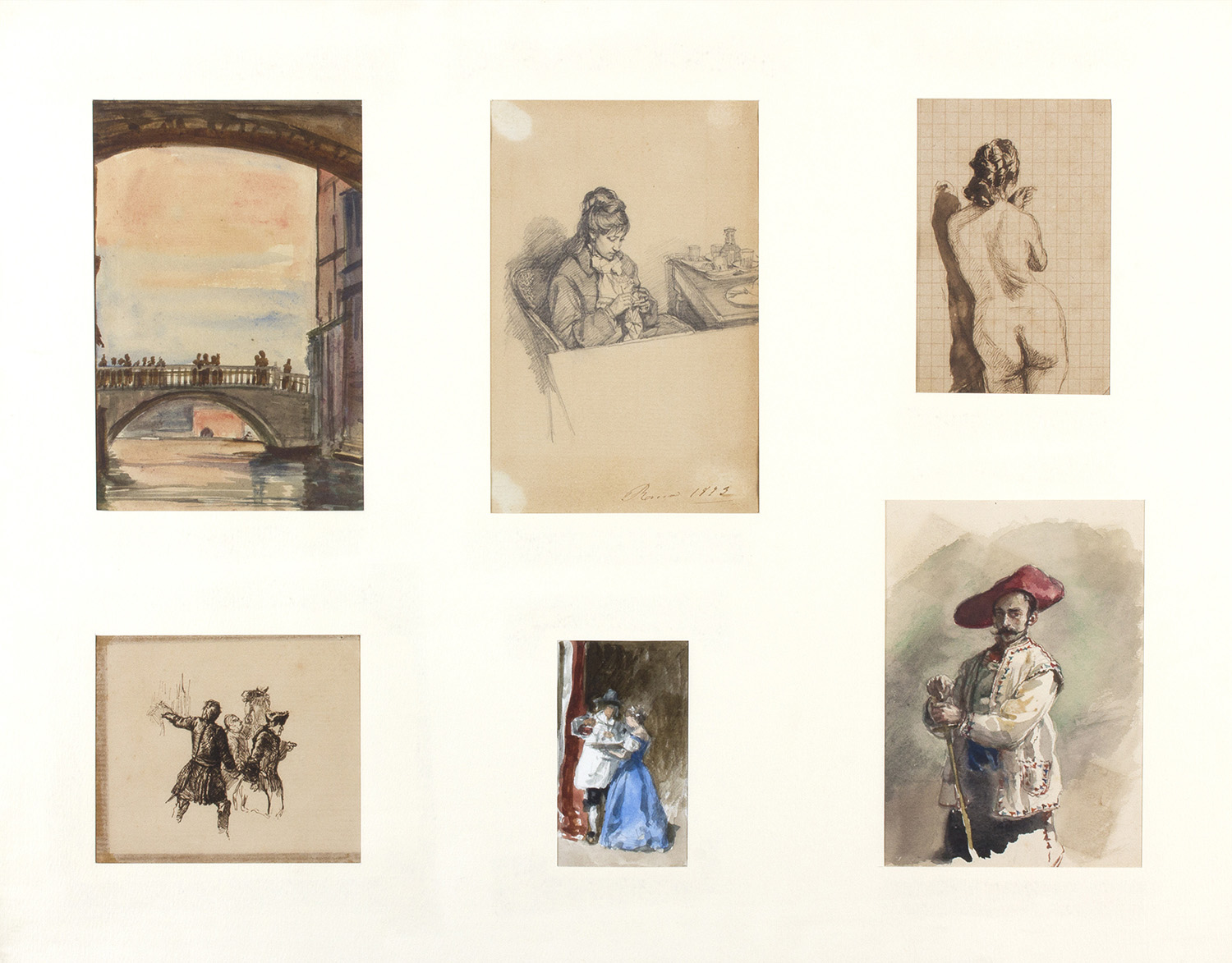 SCIPIONE VANNUTELLI Sei studi Tecnica mista, 40 x 52 cm circa (complessivi) Luogo e data in basso a destra di un bozzetto