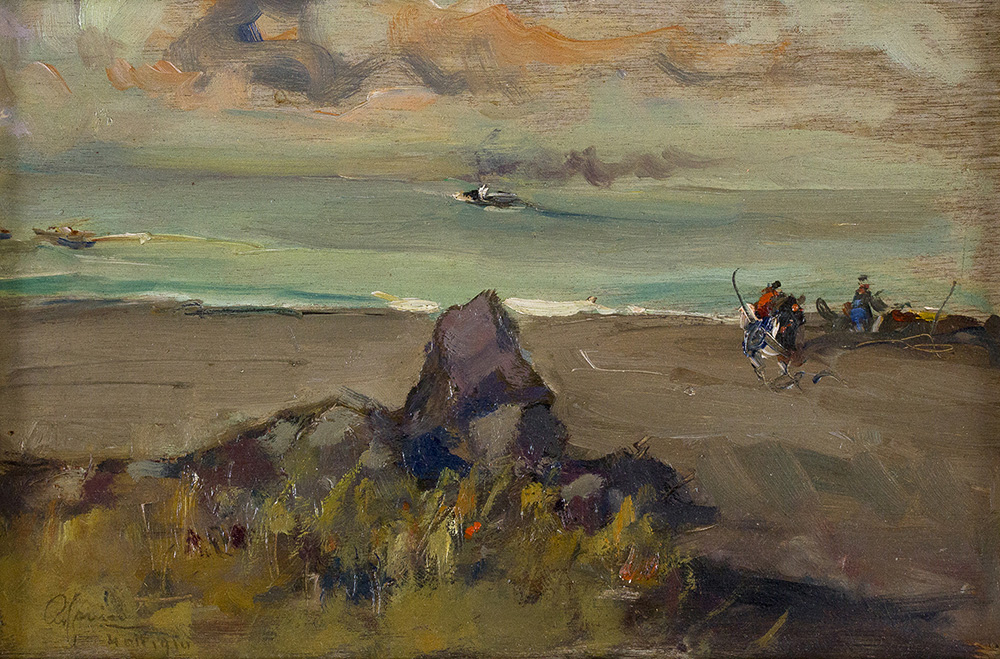GIUSEPPE CASCIARO Spiaggia del Salento, 1910 Olio su tavoletta, 18,7 x 26,3 cm Firma e data in basso a sinistra: Casciaro 4 ott 1910