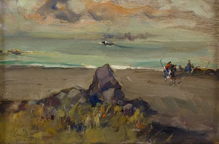 GIUSEPPE CASCIARO Spiaggia del Salento, 1910 Olio su tavoletta, 18,7 x 26,3...