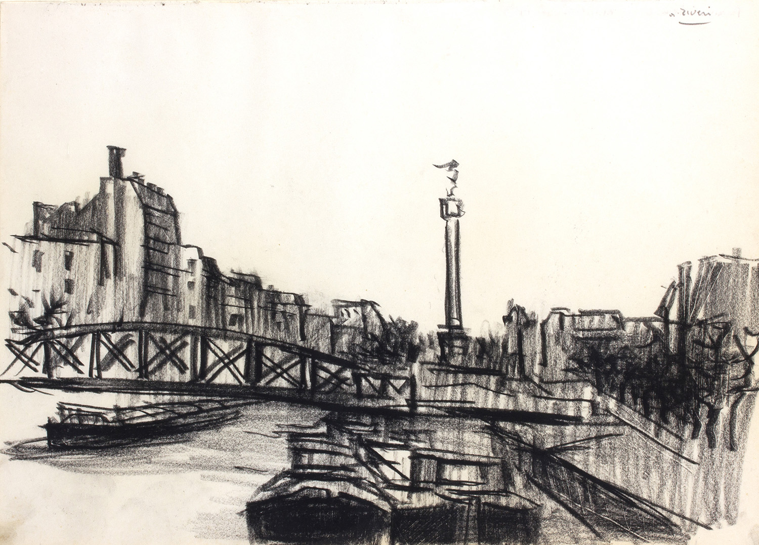 ALBERTO ZIVERI Parigi Carboncino su carta, 24,5 x 34,5 cm Firma in alto a destra: A. Ziveri Autentica su foto a cura di Fabiola Dominique Susidero