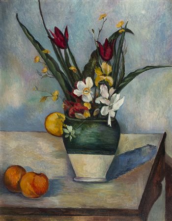 VIRGILIO GUZZI Vaso con fiori Olio su tela, 74,5 x 58,5 cm