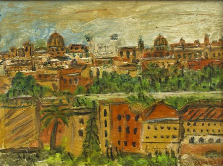 CARLO QUAGLIA Dal Gianicolo, 1960 Olio su tavola, 20 x 27 cm Firma in basso a...