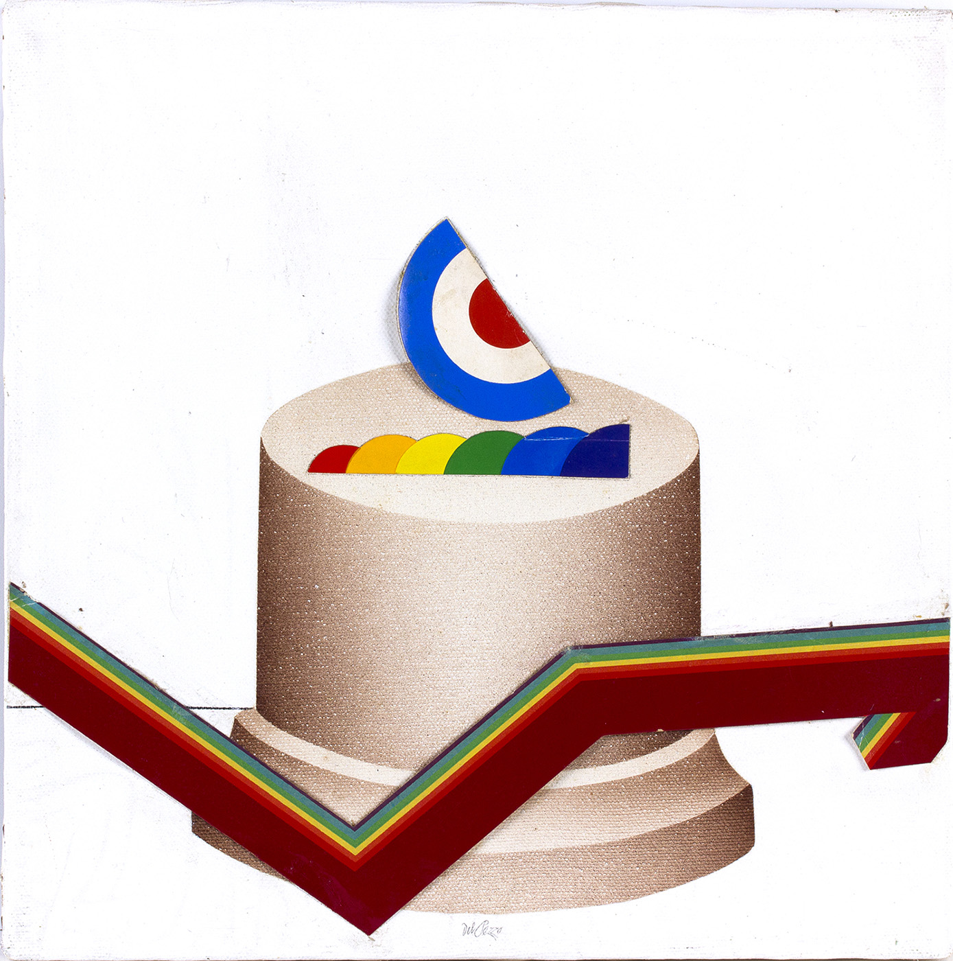 LUCIO DEL PEZZO E VANNI VIVIANI Effettivi frammenti affettivi, 1973 Acrilici e collage su tela, 30 x 30 cm Firma in basso al centro: Del Pezzo Doppia firma, titolo e n. d’archivio sul retro: Viviani, Effettivi frammenti affettivi Timbro su retro: Musèe D’Ixelles Bruxelles PUBBLICAZIONE Monumentale vostro, Vanni Viviani, Prearo Editore 1991, Pag. 37