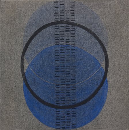 BICE LAZZARI Colonna Sonora, 1967 Tempera su tela, 25 x 25 cm Firma, luogo e data al retro: B. Lazzari – Roma – 12 – 1967 Scritte con numeri d’archivio e dedica al retro PUBBLICAZIONI P. Fossati, A. Veca, M. G. La Padula, Bice Lazzari - Opere 1925-1981, Electa, Milano 1984, p. 252, n. 612