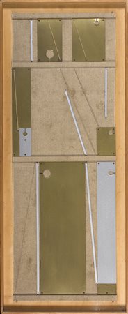 MICHELANGELO CONTE Stendardo n° 1, 1977 Rilievo in tela e metalli, 122 x 44...