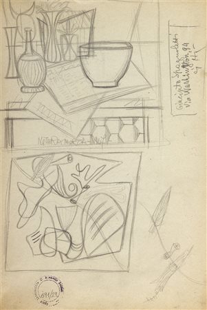 ATANASIO SOLDATI Natura morta Matita su carta, 32 x 21,5 cm Timbro e numero d’archivio in basso a sinistra: Opere inventario Atanasio Soldati 691/29 Al retro uno studio ed alcuni indirizzi