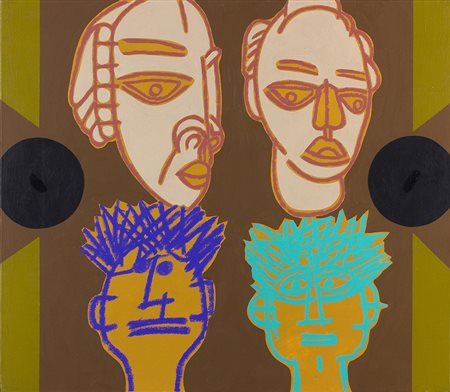 CONCETTO POZZATI Volti, 2001 Acrilico su tela, 70 x 80 cm Firma e data al...