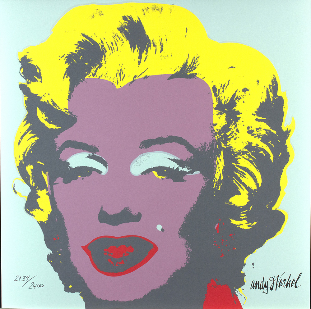 ANDY WARHOL Marilyn Monroe, 1986 Litografia a colori su carta, 60 x 60 cm Firma stampata sul fronte in basso a destra: Andy Warhol Edizione numerata sul fronte in basso a sinistra: 2134/2400 Timbro sul retro: ‘CMOA’ - Carnegie Museum Of Art di Pittsburgh Editore Carnegie Museum of Art, Pittsburgh Il Carnegie Museum of Art si trova a Pittsburgh, città natale di Warhol e presenta la più grande collezione al mondo di opere originali di Warhol. L’immagine rappresenta la Marilyn edizione del 1967 con riferimento F. Feldman and J.Shellmann 1962 – 1987 N. II 22-31.