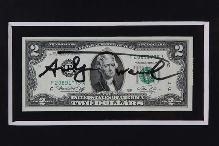 ANDY WARHOL 2 Jefferson’s Dollars, 1976 6,7 x 15,7 cm Opera unica Firma sul...