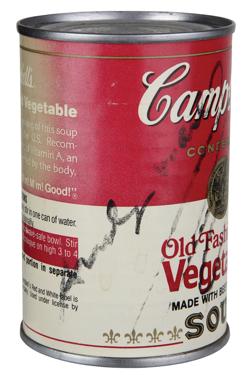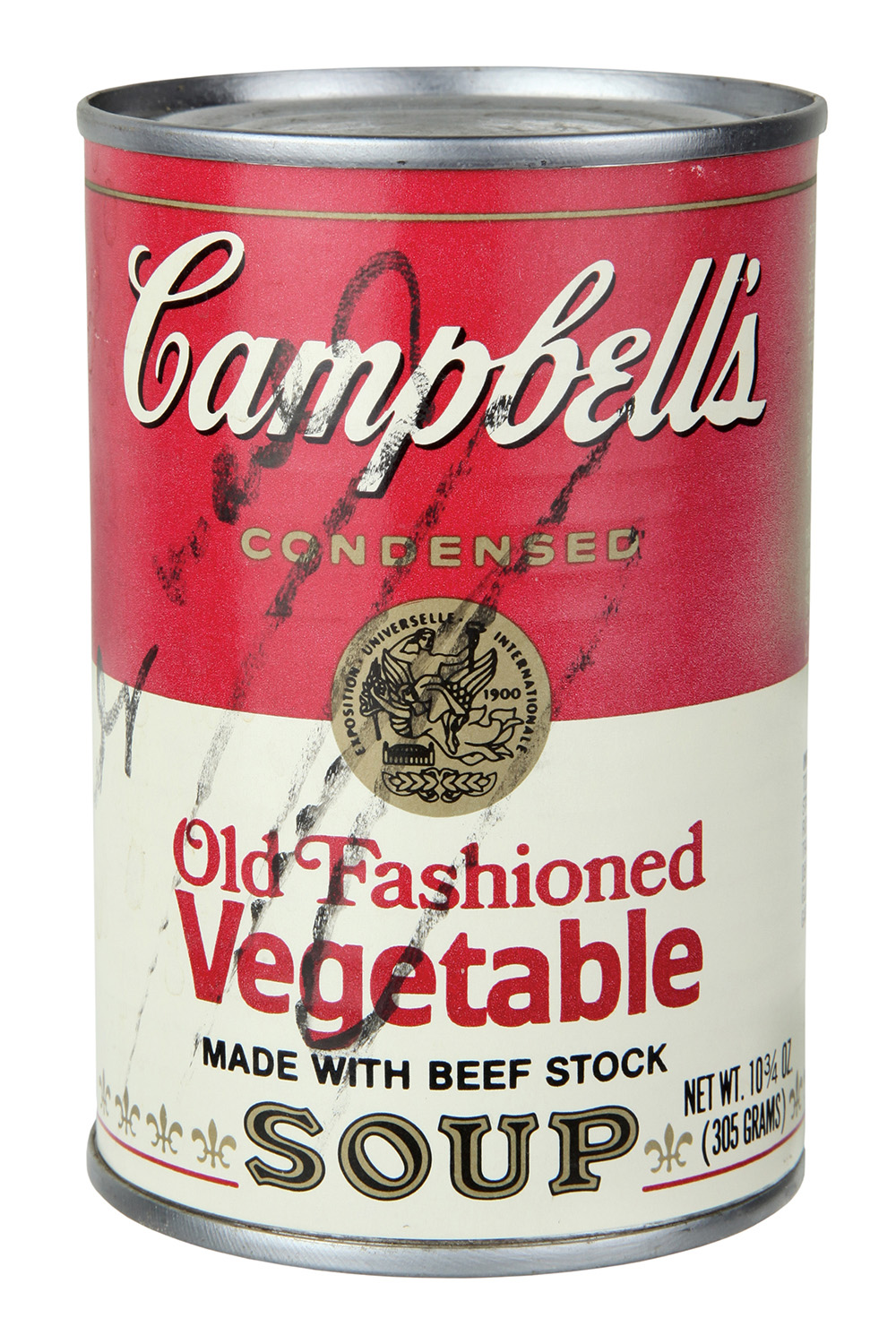 ANDY WARHOL Campbell's Soup - Old Fashioned Vegetable, 1970 ca. 10 x 6,5 X 6,5 cm Firma con marker su lattina di conserva Campbell’s Soup: Andy Warhol ESPOSIZIONI Just Warhol, Ginevra, 19 Marzo - 12 Maggio 2015 PROVENIENZA Collezione Privata Alcuni esemplari sono pubblicati sul catalogo ‘Andy Warhol Vetrine’ di Achille Bonito Oliva - Silvana Editoriale pag. 221