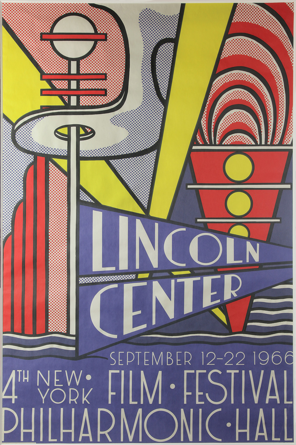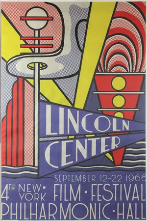 ROY LICHTENSTEIN Lincoln Center, 1966 Offset, 114,3 x 75,3 cm Una di 500 Editore Lincoln Center/List Art Poster and Print Program Riferimento al catalogo The Prints of Roy Lichtenstein, Catalogue Raisonnè 1984 - 1993’ M.L. Corlett .N. III.21 Questa affiche è stata realizzata per la quarta edizione del New York Film Festival. In questa versione del manifesto la stampa dei colori e’ stata modificata al fine di compensare le variazioni usate nell'edizione su foglio d’argento.