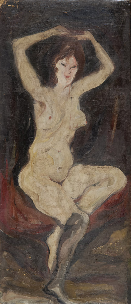GIOVANNI STRADONE (Nola 1911 - Roma 1981) Nudo di donna con braccia alzate Olio su tela, cm. 37 x 16,4 Firma, titolo e data al retro PROVENIENZA Collezione Daniela Stradone, Roma