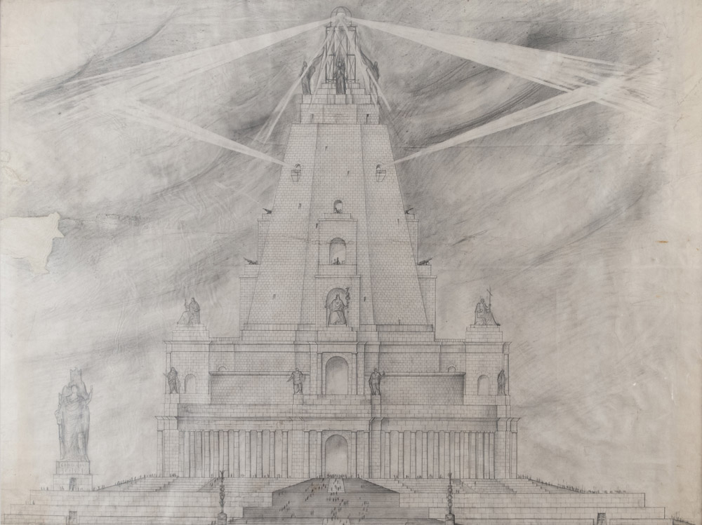 ARMANDO BRASINI (Roma 1879 - 1965) Faro, anni '30 Tecnica mista su cartoncino, cm. 109 x 148 PROVENIENZA Collezione privata, Roma Fori e gore sparse