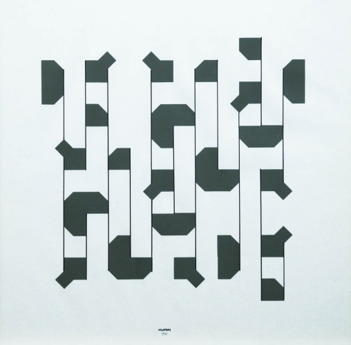 BRUNO MUNARI 1907 - 1998 " Curve di Peano ", 1975 Serigrafia e pennarello su carta, cm. 50 x 50 Firmato e datato in basso al centro Pubblicato Catalogo " Bruno Munari ", Valente Arte Edizioni, p.69 Fotocopia autentica dell'artista Prov. Collezione Privata