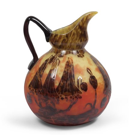 BROCCA IN VETRO DOPPIO, LE VERRE FRANCAIS, 1925 ca. Decoro a campanule e...