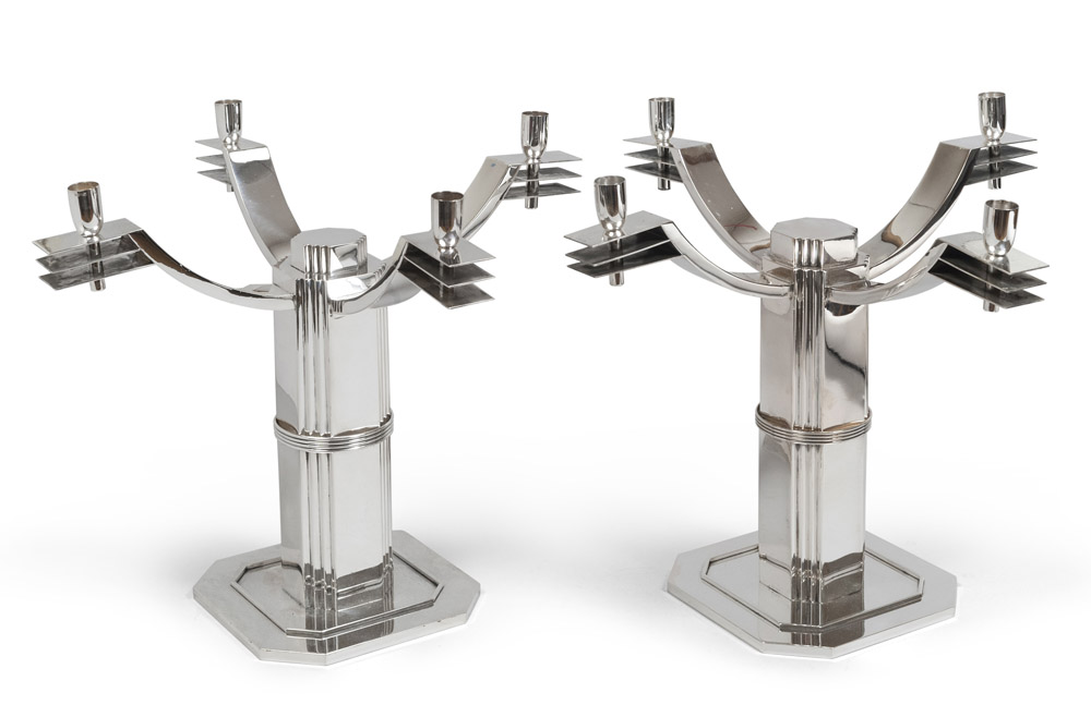 ARRIGO FINZI (La Spezia 1890 - Milano 1973) Coppia di candelabri d'argento a...