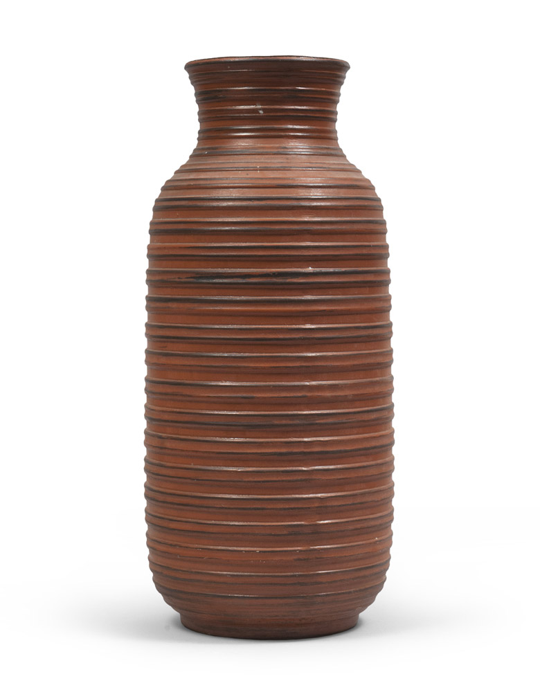 GRANDE VASO IN TERRACOTTA, ANNI '60 con costolature orizzontali, dipinto a mano Misure cm. 50 x 20 Ø Bollato sotto la base 'W. Germany'