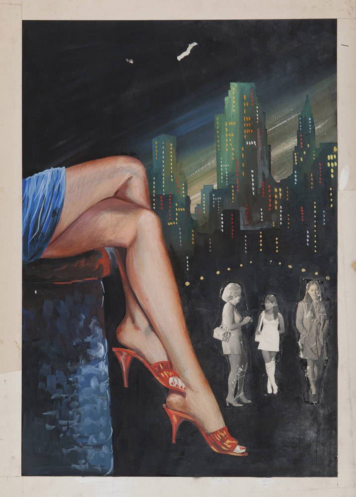 BOZZETTO PER IL MANIFESTO DEL FILM TACCHI A SPILLO, ANNI '70 Tecnica mista e collage su cartoncino, cm. 47 x 33,5 PROVENIENZA Collezione Società Adriana Chiesa Enterprises, Roma