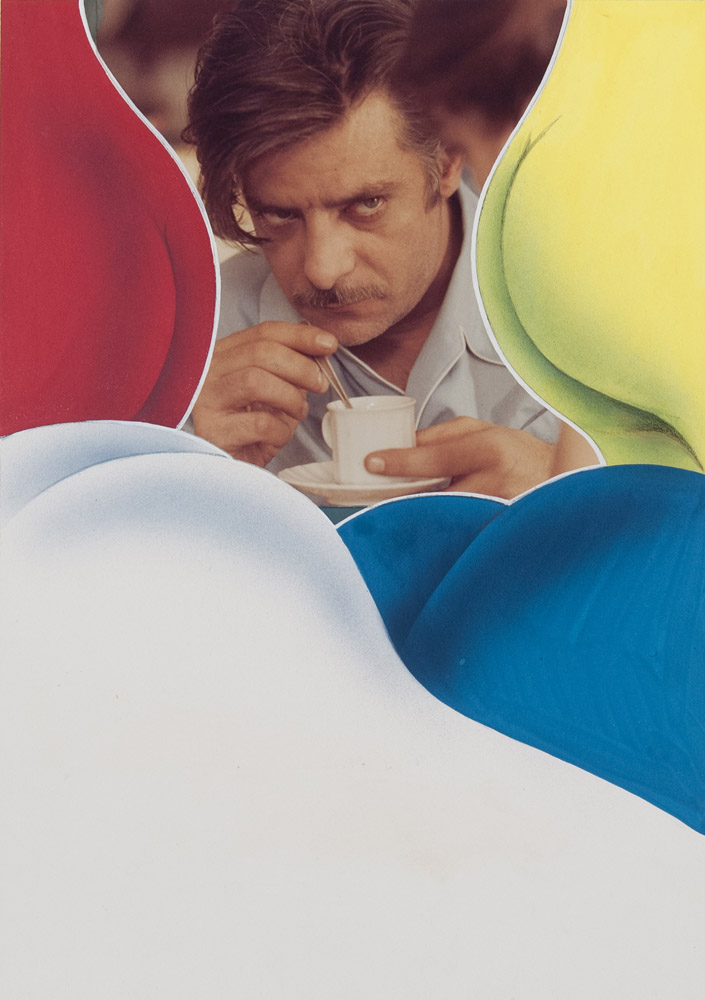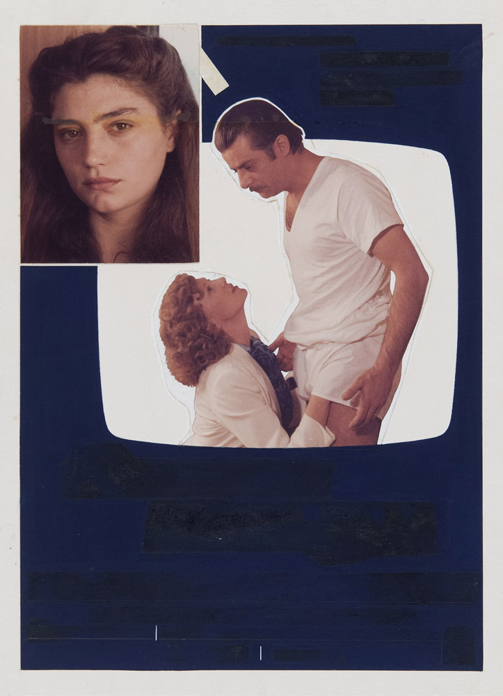BUONE NOTIZIE Due bozzetti per i manifesti del film del 1979 scritto e diretto da Elio Petri, con Ombretta Colli, Giancarlo Giannini, Paolo Bonacelli, Aurore Clément. Tecnica mista e collage su cartoncino, cm. 43 x 32 e 46,5 x 35 PROVENIENZA Collezione Società Adriana Chiesa Enterprises, Roma