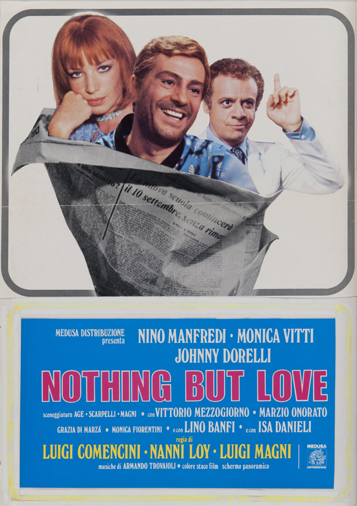NOTHING BUT LOVE - BASTA CHE NON SI SAPPIA IN GIRO Bozzetto per la locandina del film ad episodi del 1976 diretto da Luigi Comencini, Nanni Loy e Luigi Magni Tecnica mista e collage su carta, cm. 42,5 x 30 PROVENIENZA Collezione Società Adriana Chiesa Enterprises, Roma