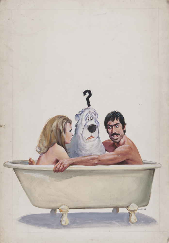 BOZZETTO DEL MANIFESTO DI UN FILM DELLA COMMEDIA SEXY ITALIANA, ANNI '70 con Lando Buzzanca Tempera su cartoncino, cm. 73 x 51 Firmato in basso 'P. Franco' PROVENIENZA Collezione Società Adriana Chiesa Enterprises, Roma