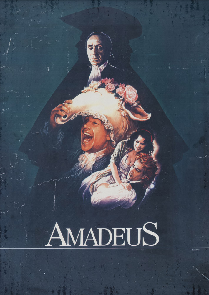 RENATO CASARO (Treviso 1935) AMADEUS Bozzetto per il manifesto del film del 1984 diretto da Milos Forman, tratto dall'omonima opera teatrale di Peter Shaffer con F. Murray Abraham e Tom Hulce. Vincitore di 8 Premi Oscar tra cui Miglior Film e Miglior Regia, 4 Golden Globe, 3 David di Donatello nel 1985, 1 Nastro D'Argento nel 1985 Prova stampa, cm. 41 x 29,5 Firma in basso a destra PROVENIENZA Collezione Società Adriana Chiesa Enterprises, Roma