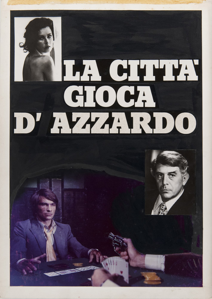 LA CITTA' GIOCA D'AZZARDO Due bozzetti per il manifesto del film noir del 1975 diretto da Sergio Martino con Enrico Maria Salerno, Luc Merenda, Dayle Haddon, Corrado Pani, Piero Palermini. Tecnica mista su cartoncino ed intervento a matita sul retro, cm. 51 x 36,5 Tecnica mista e collage, cm. 37 x 68 PROVENIENZA Collezione Società Adriana Chiesa Enterprises, Roma