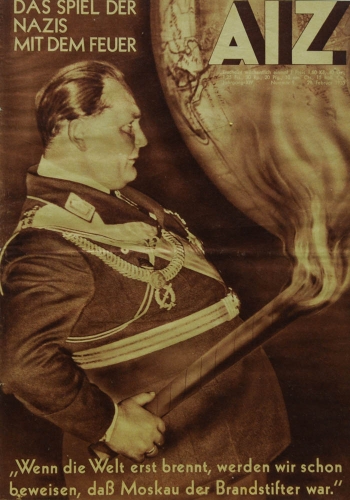 JOHN HEARTFIELD 1891 - 1968 " Wenn die welt erst brennt, werden wir schon beweisen, dab Mosckau der Brandstifter war. " Copertina rivista AIZ, cm. 36,5 x 27 Prov. Collezione Privata