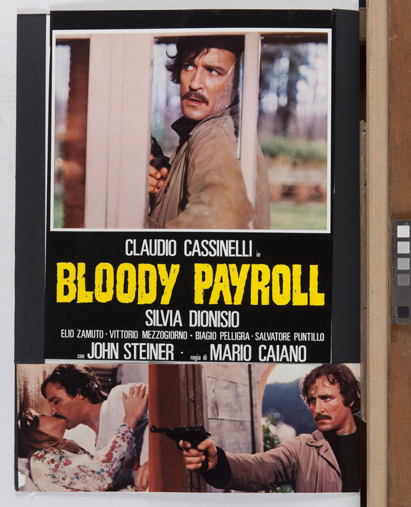 BLOODY PAYROLL - MILANO VIOLENTA Bozzetto per la locandina del film del 1976 di Mario Caiano con John Steiner, Claudio Cassinelli, Silvia Dionisio Tecnica mista e collage, cm. 41,5 x 30 PROVENIENZA Collezione Società Adriana Chiesa Enterprises, Roma
