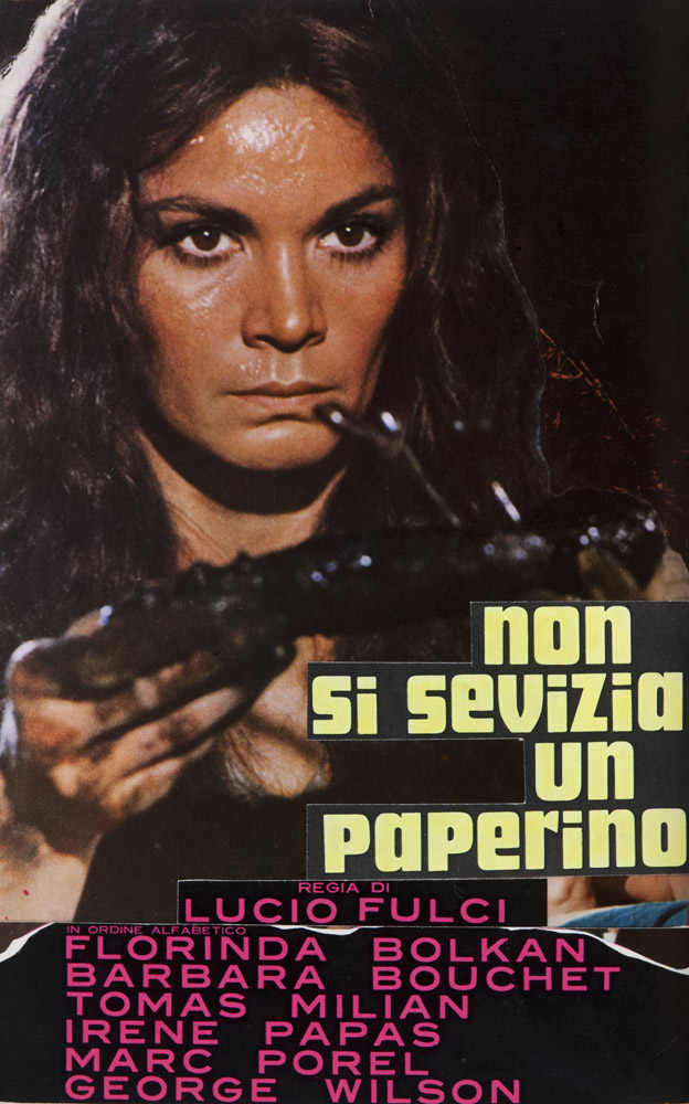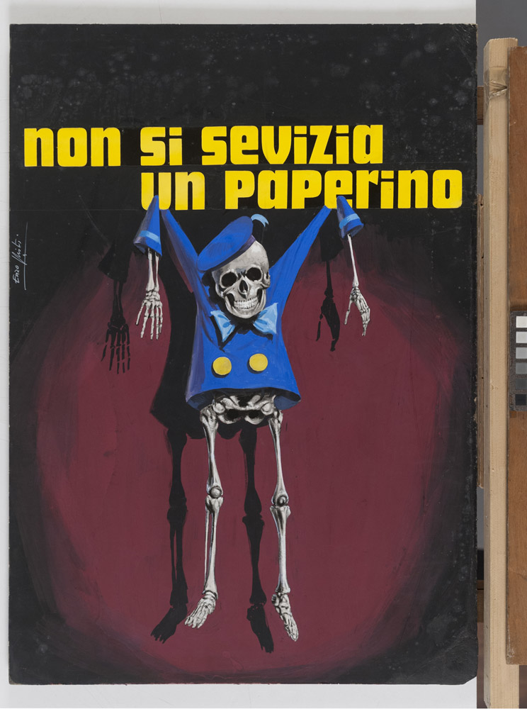 NON SI SEVIZIA UN PAPERINO Due bozzetti per la locandina del film del 1972 diretto da Lucio Fulci con Tomas Milian, Barbara Bouchet, Florinda Bolkan Tecnica mista e collage, cm. 37,5 x 24 Tecnica mista e collage con intervento sul retro, cm. 57,5 x 40