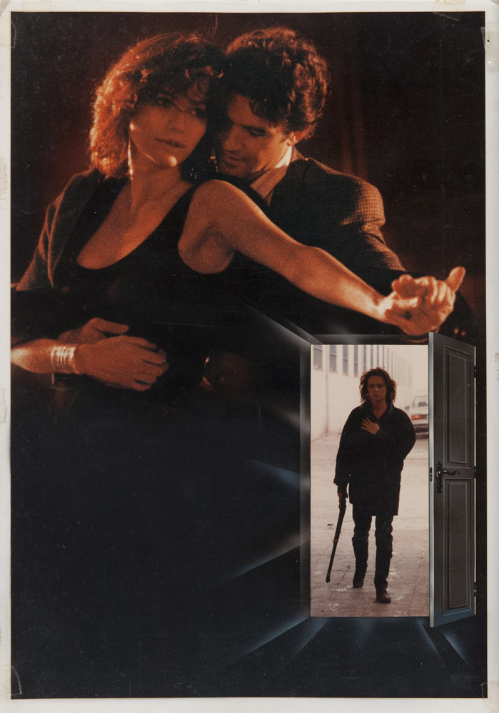 SPARA CHE TI PASSA - ¡DISPARA! Bozzetto per la locandina del film del 1993 diretto da Carlos Saura con Francesca Neri e Antonio Banderas. Stampa fotografica e carta lucida, cm. 48,5 x 33,5 PROVENIENZA Collezione Società Adriana Chiesa Enterprises, Roma
