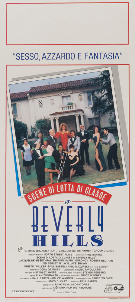 SCENE DI LOTTA DI CLASSE A BEVERLY HILLS Manifesto del film diretto da Paul Bartel del 1989 e interpretato da Jacqueline Bisset. Misure, cm. 67 x 32,5 PROVENIENZA Collezione Società Adriana Chiesa Enterprises, Roma