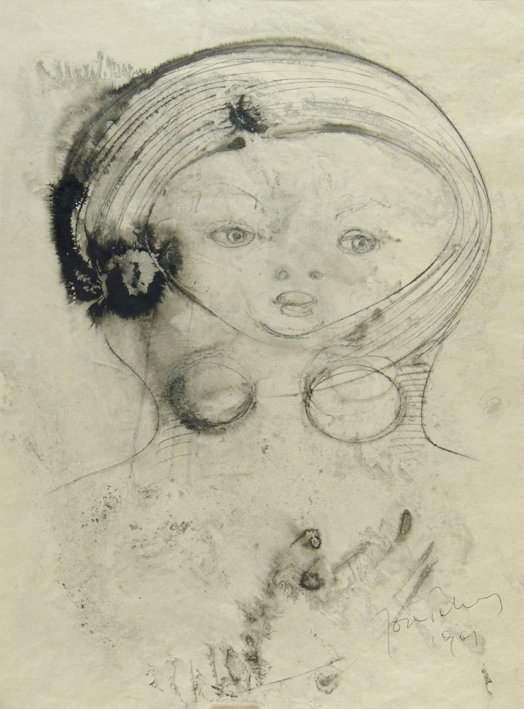 Joze Pohlen 1926 "Ragazza felice" cm. 50x35 - tecnica mista su carta Firmato b. a d. e datato 1961.