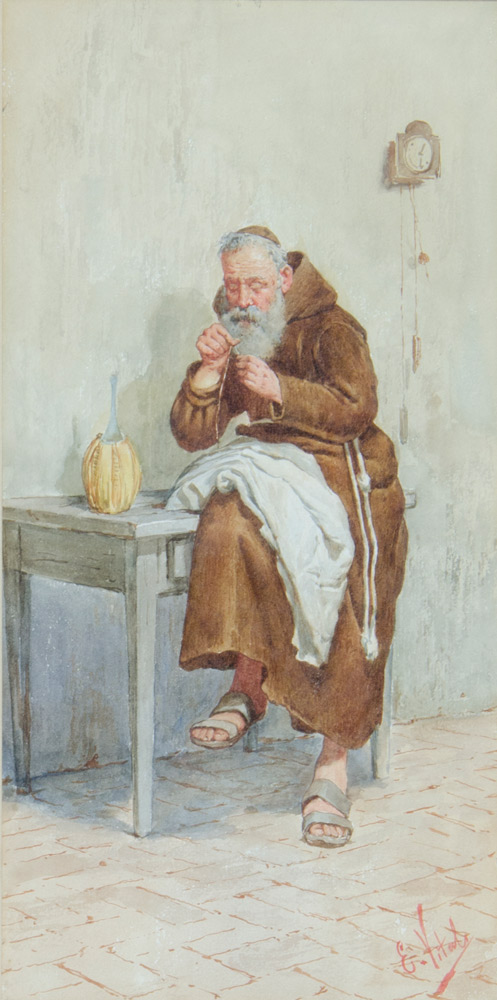 Eduard Vitali "In riposo" cm. 34x17 - acquerello su carta Firmato b. a d.