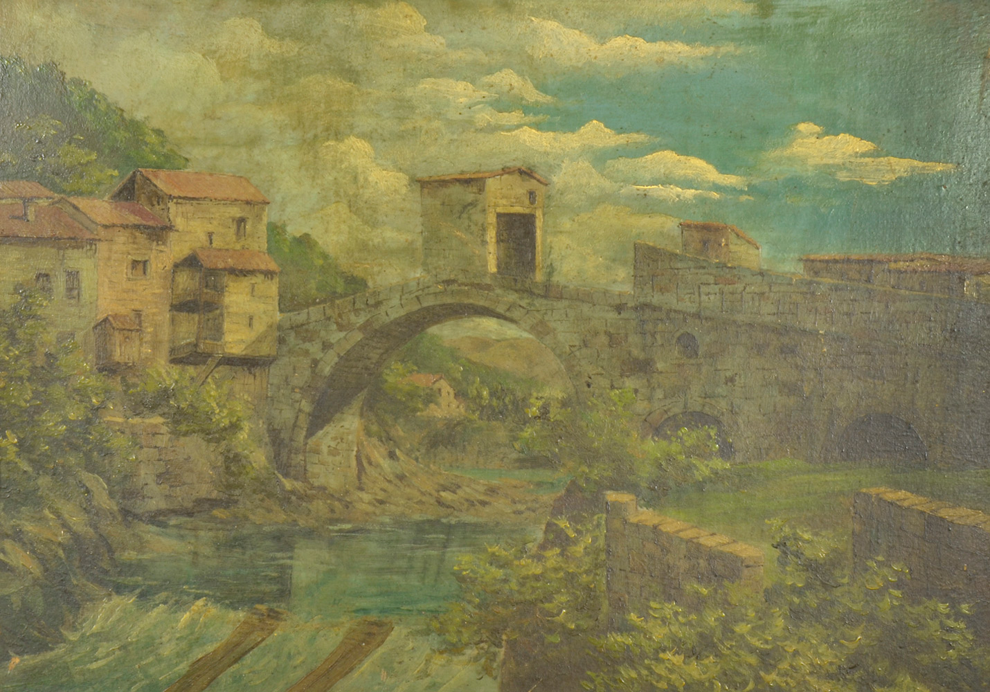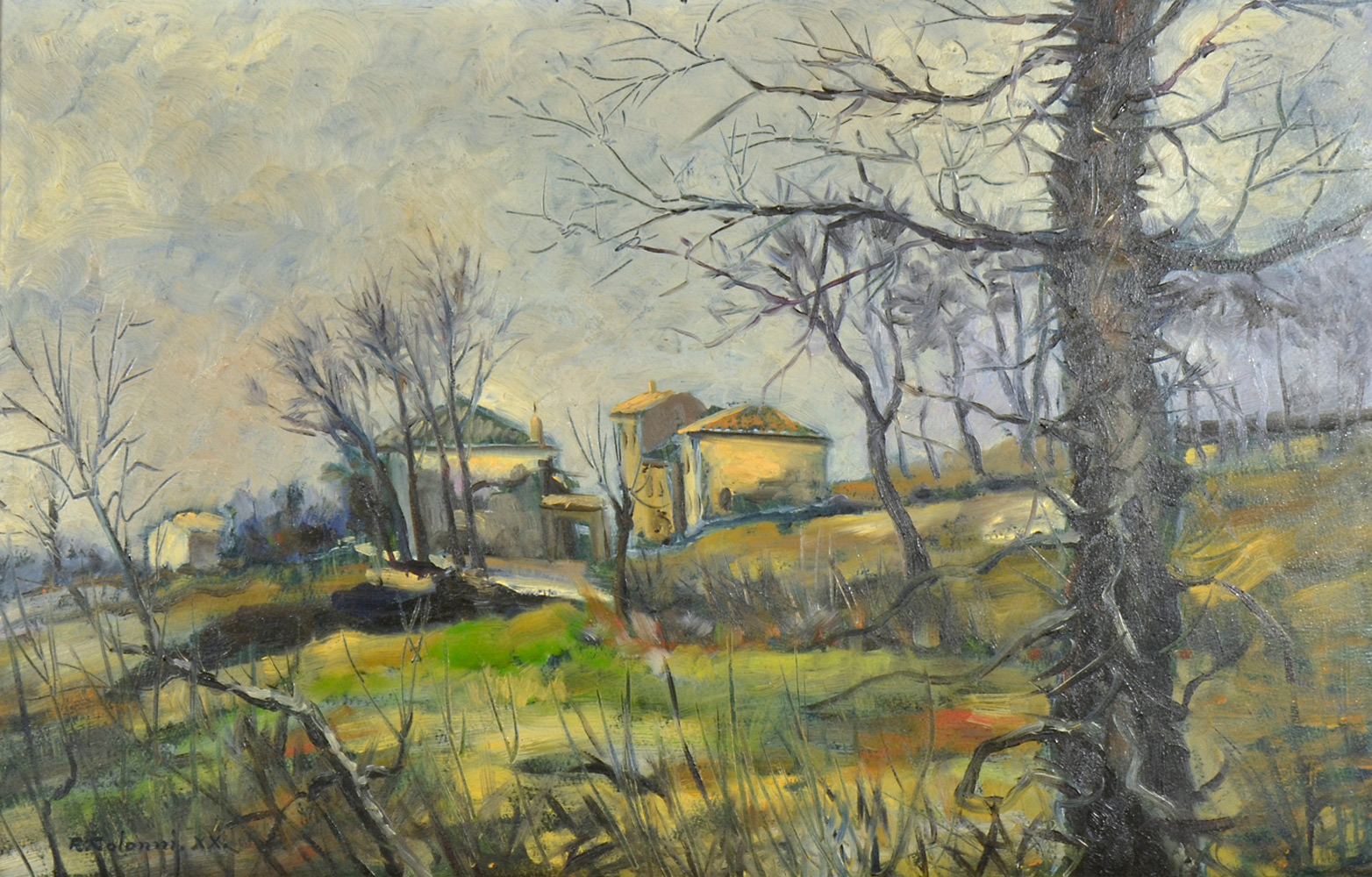 Lotto di 2 opere ad olio raffiguranti paesaggi, misure diverse.