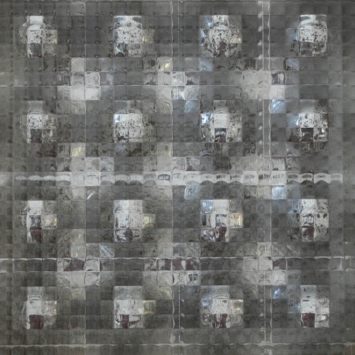 ROCCO BORELLA 1920 - 1994 Senza titolo, 1970 Rilievi in alluminio con vetro ondulato, cm. 49 x 49 x 6 Firmato e datato sul retro Timbro Galleria Rotta sul retro Prov. Collezione privata