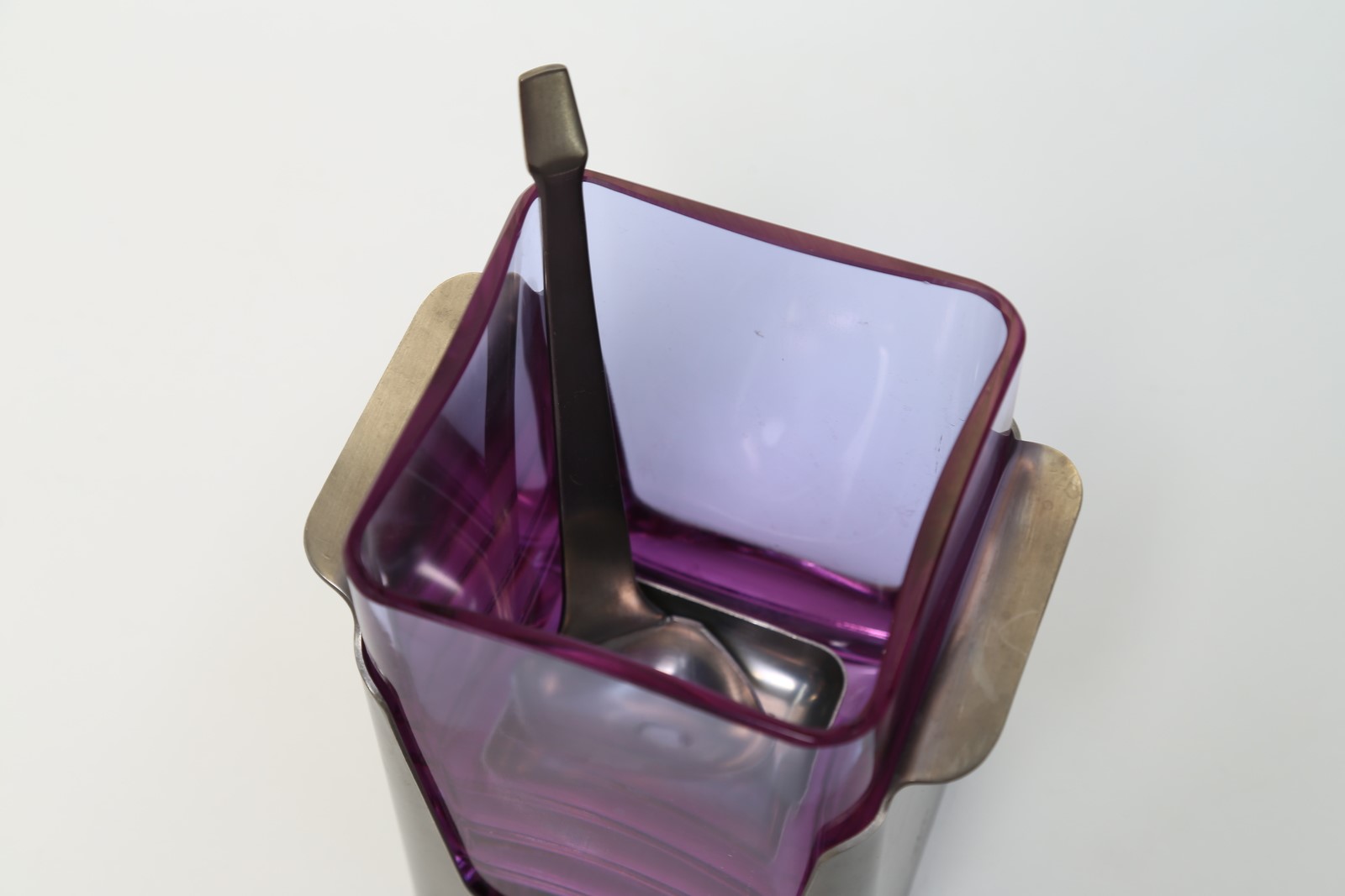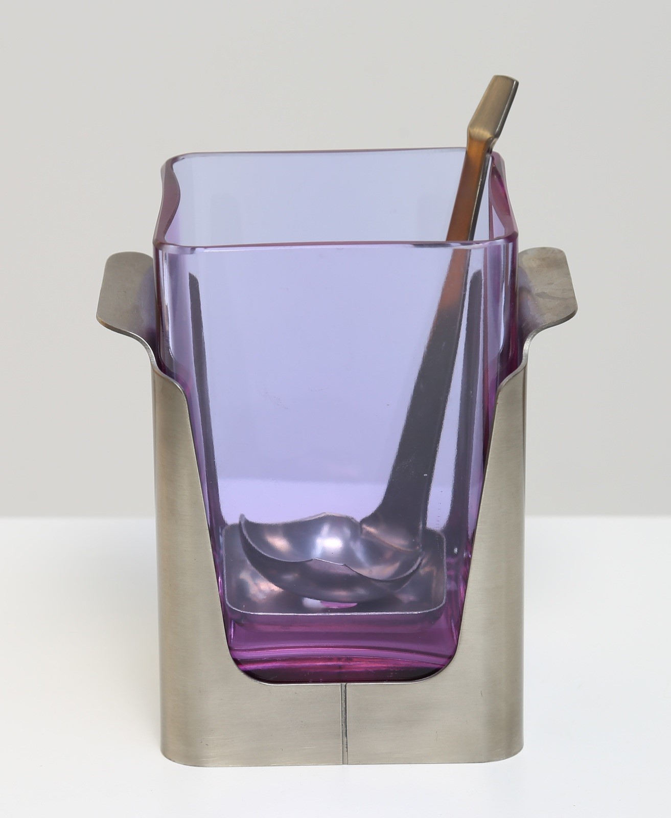 MANIFATTURA ITALIANA Porta ghiaccio in cristallo e peltro, anni 60 . -. Cm...