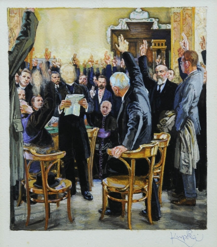 FRANK KUPKA 1871 - 1957 " Histoire Tchèque ", 1919 Gouache su carta, cm. 31 x...