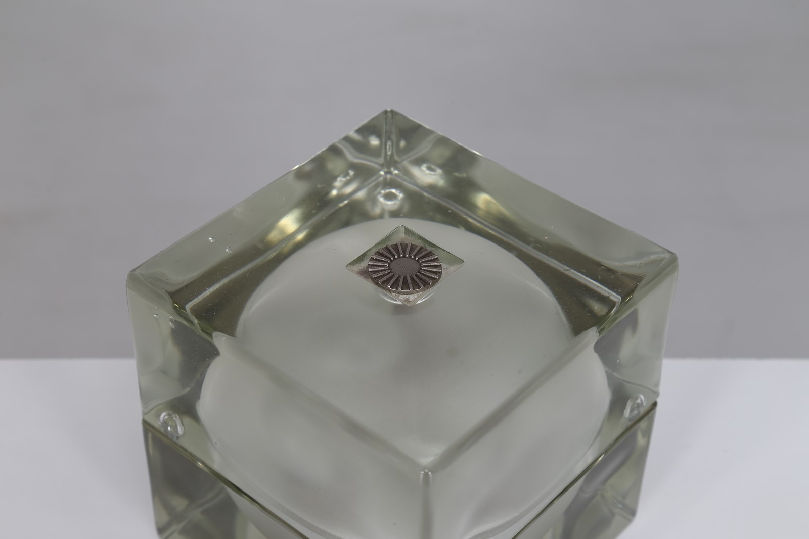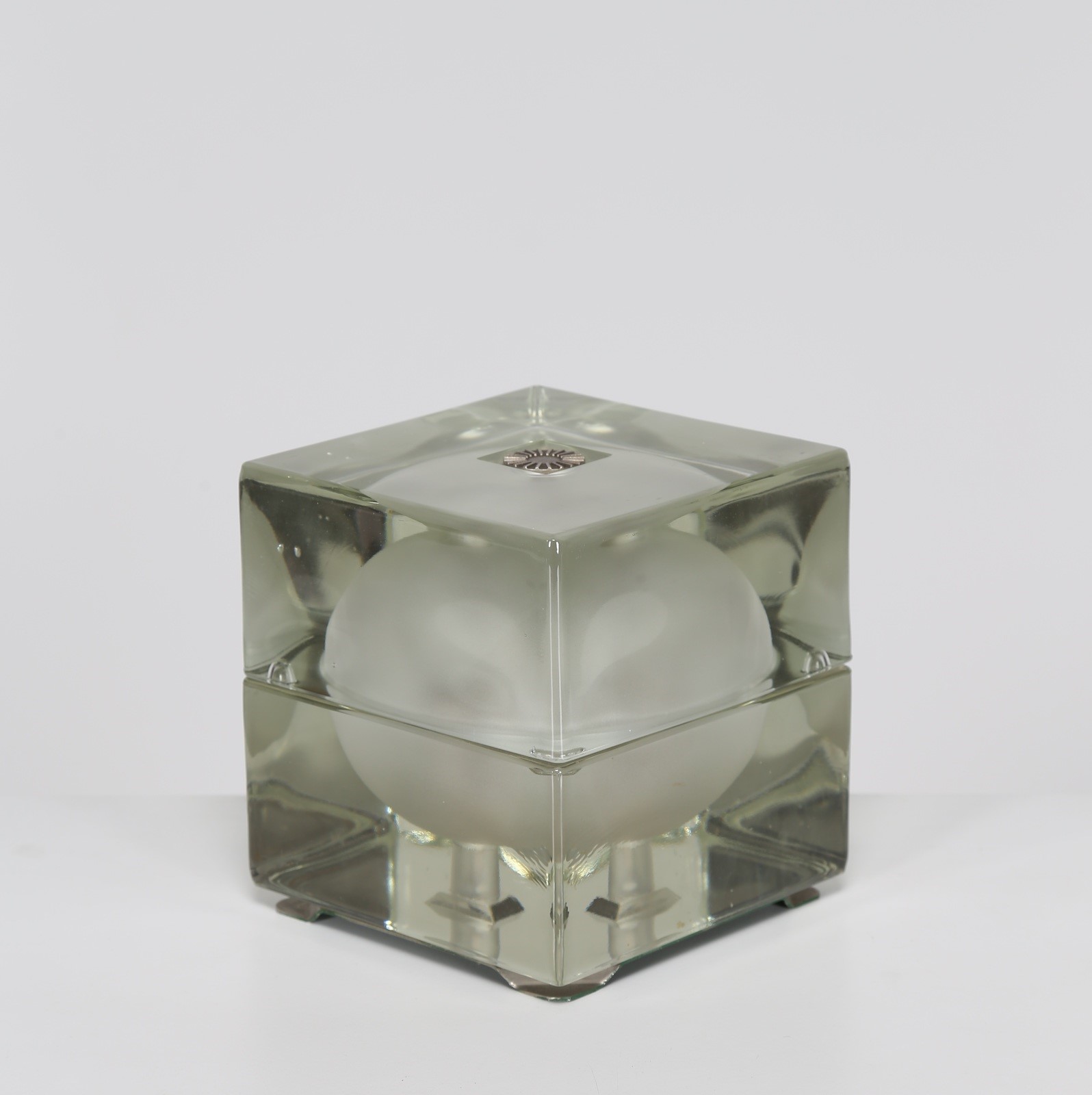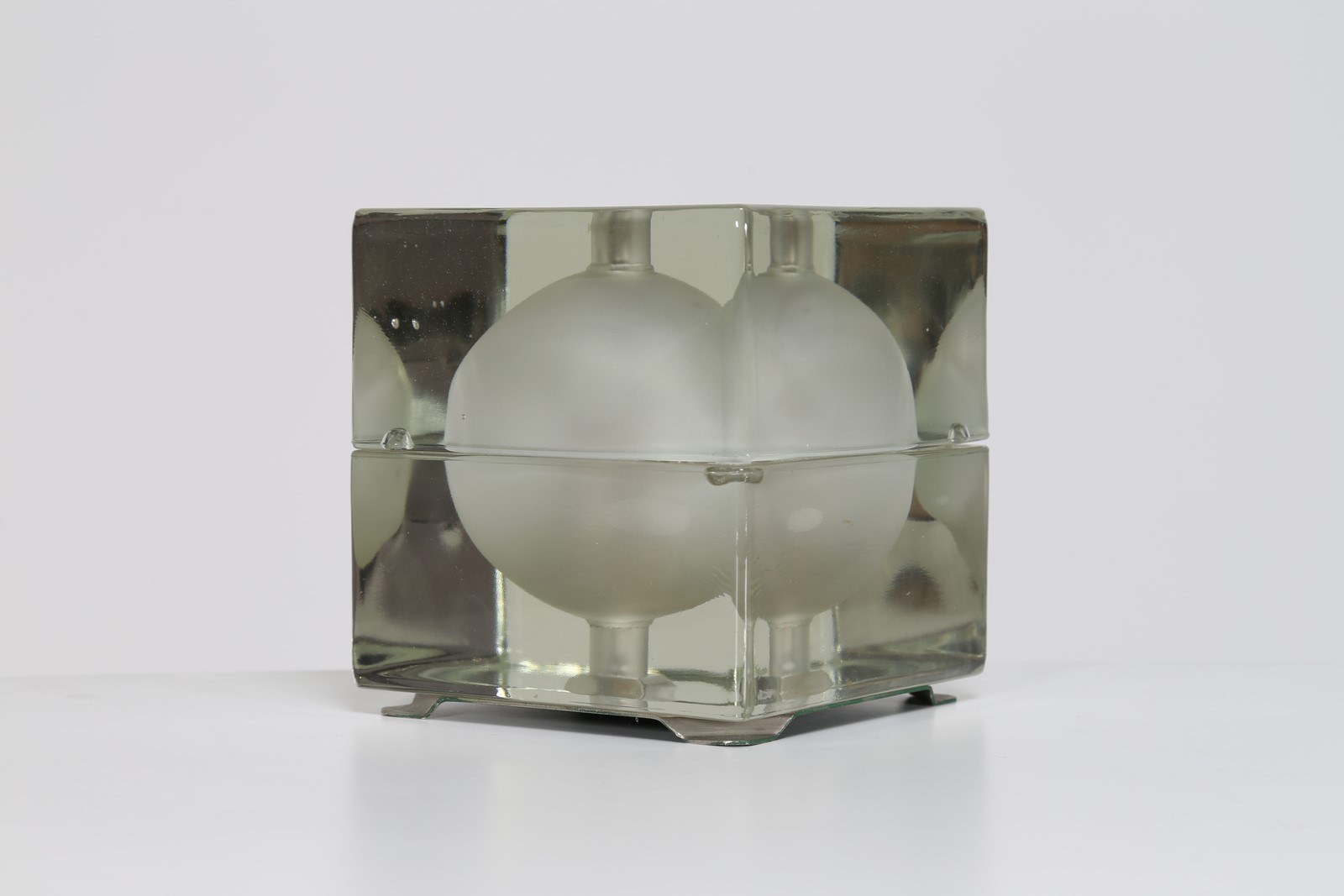 MENDINI ALESSANDRO (n. 1931) Lampada da tavolo in vetro e metallo, mod. Cubosfera, per Fidenza Vetreria. 1968. 1968. . Cm 16,00 x 16,00 x 16,00.