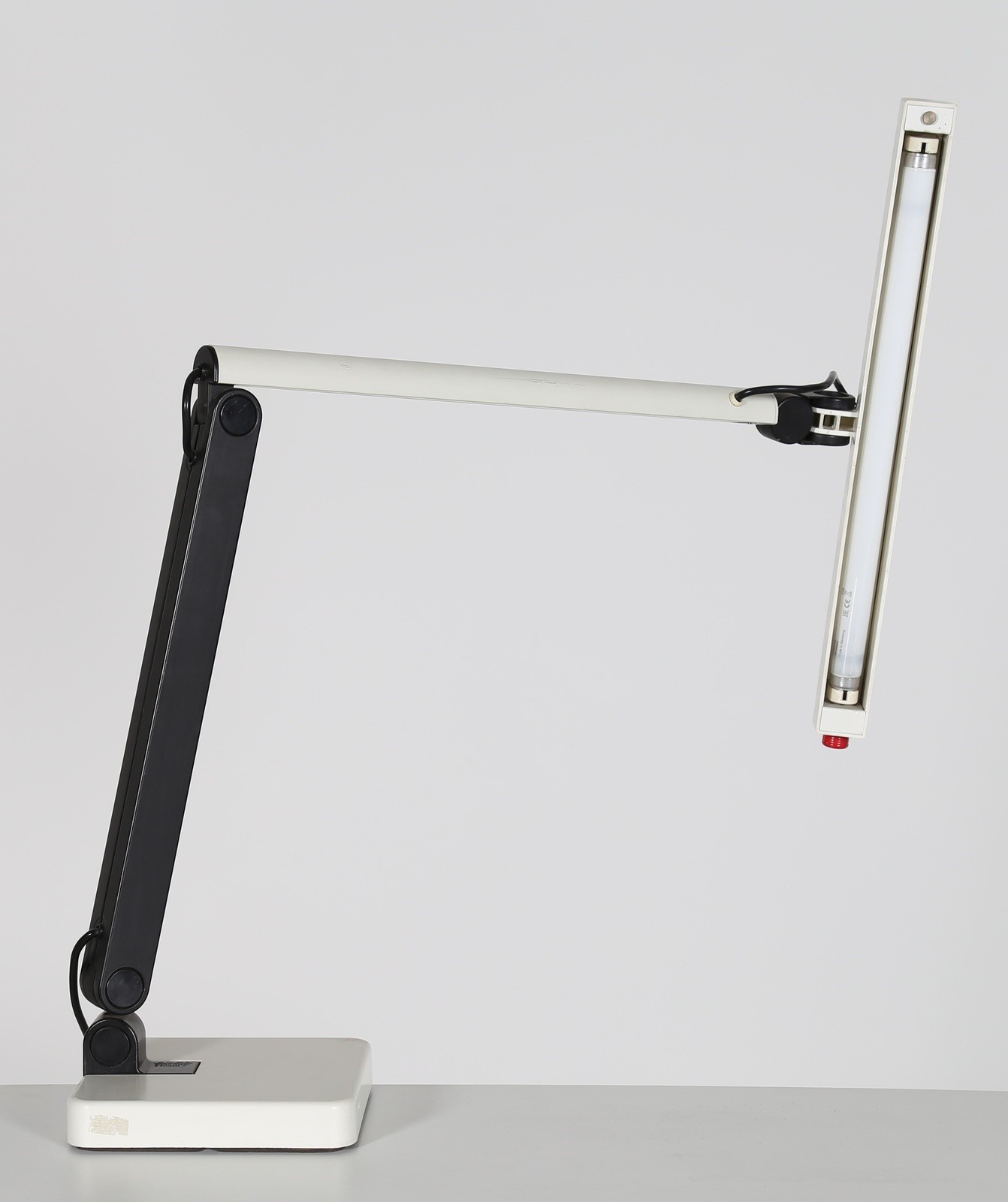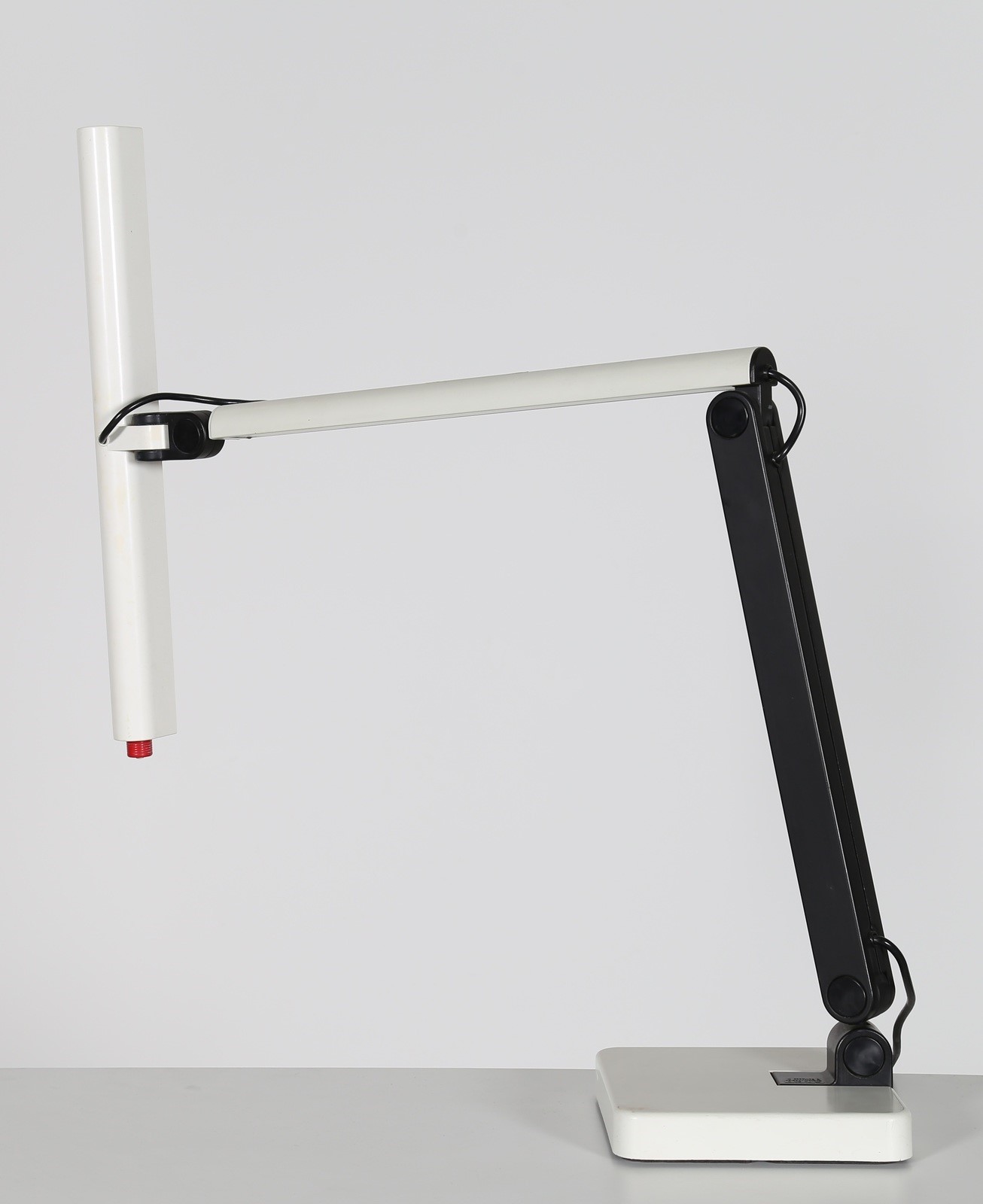 SOTTSASS ETTORE (1917 - 2007) Lampada da tavolo in metallo, per Erco anni 70. Pubblicazioni; Domus num. 527 ottobre 1973 pag. 88. -. Cm 20,00 x 90,00 x 70,00.
