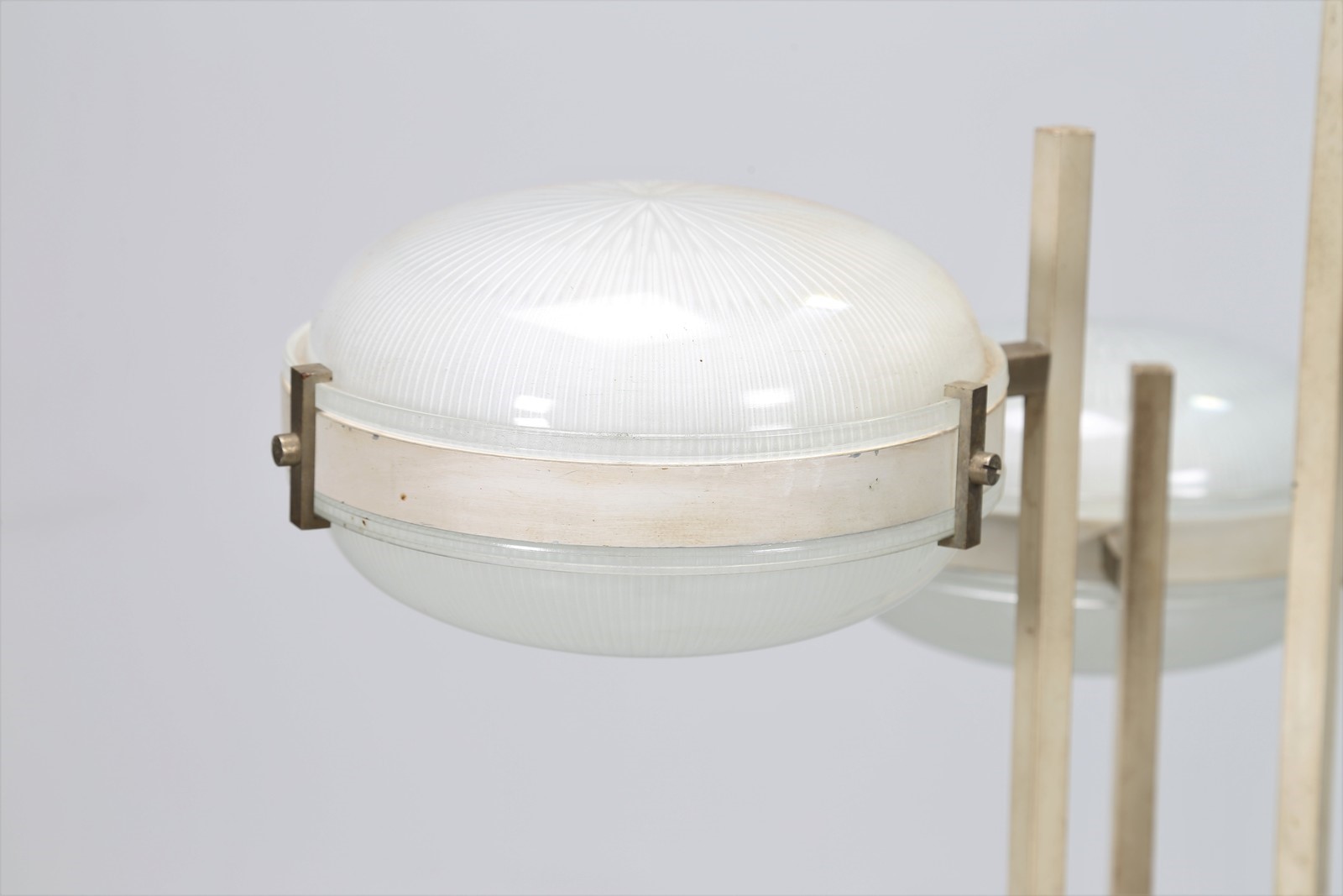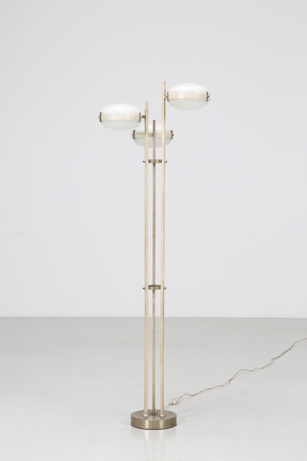 MAZZA SERGIO (n. 1931) Attrib. Lampada da terra, metallo, ottone e vetro, per Artemide anni 60. Metallo, vetro e ottone. Cm 49,00 x 149,00 x 49,00.