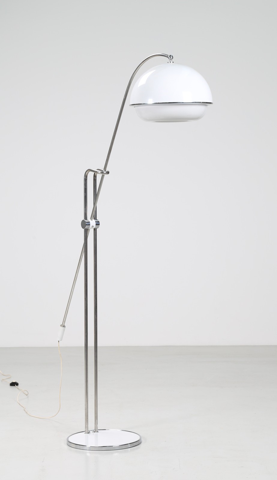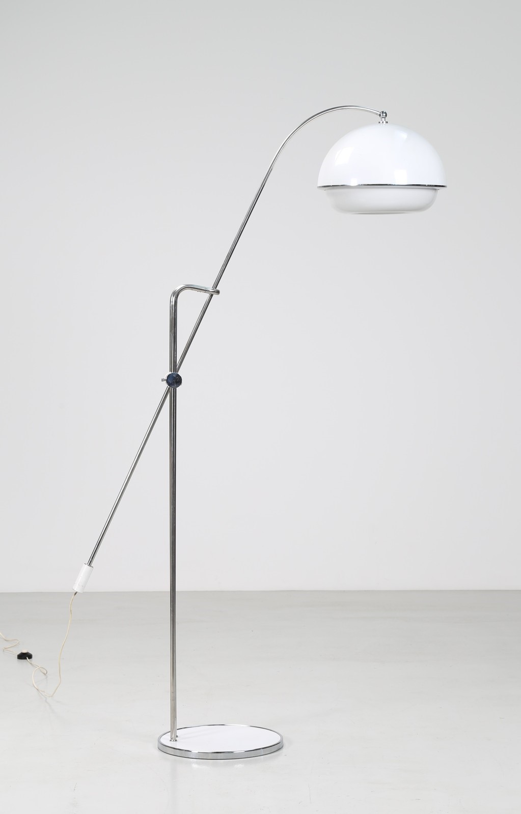 MANIFATTURA ITALIANA Lampada da terra in metallo cromato e laccato, perspex,...