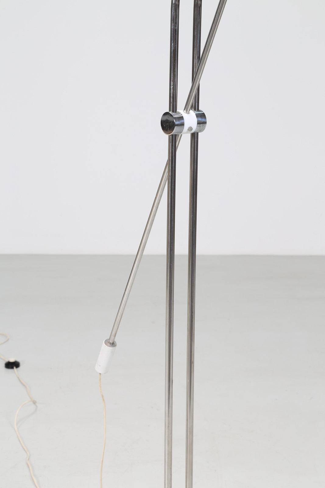 MANIFATTURA ITALIANA Lampada da terra in metallo cromato e laccato, perspex, anni 70. -. Cm 39,50 x 195,00.