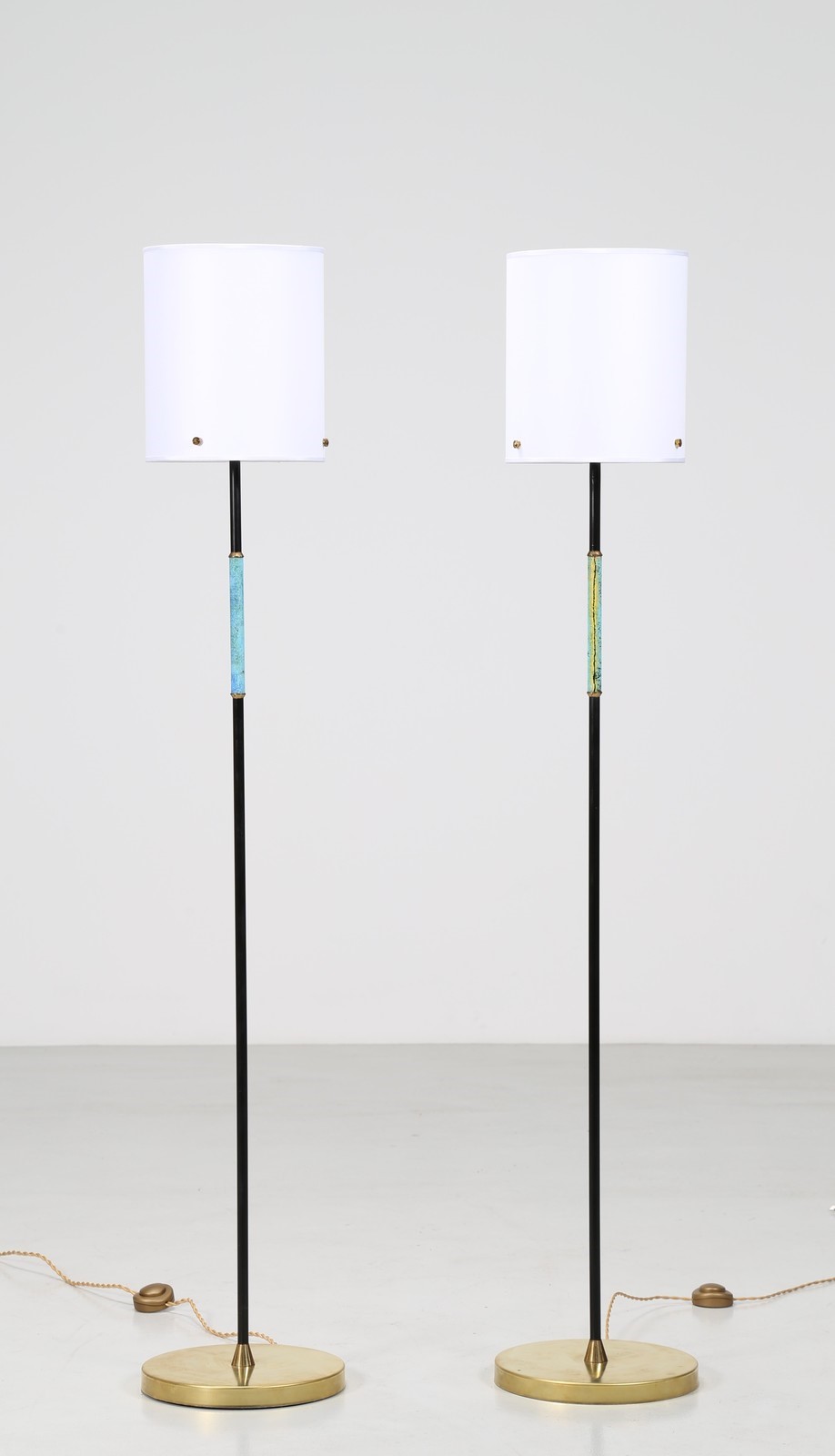FANTIN CASEY Coppia di lampade da terra in ottone, metallo laccato, smalto e...