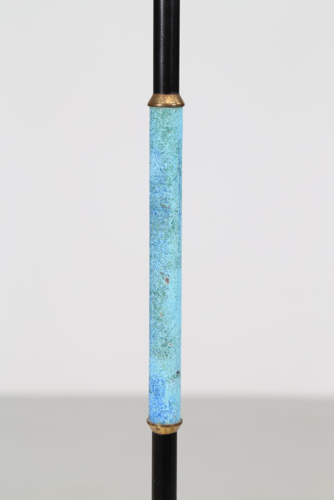 FANTIN CASEY Coppia di lampade da terra in ottone, metallo laccato, smalto e tessuto. -. Cm 30,00 x 165,00 x 30,00.