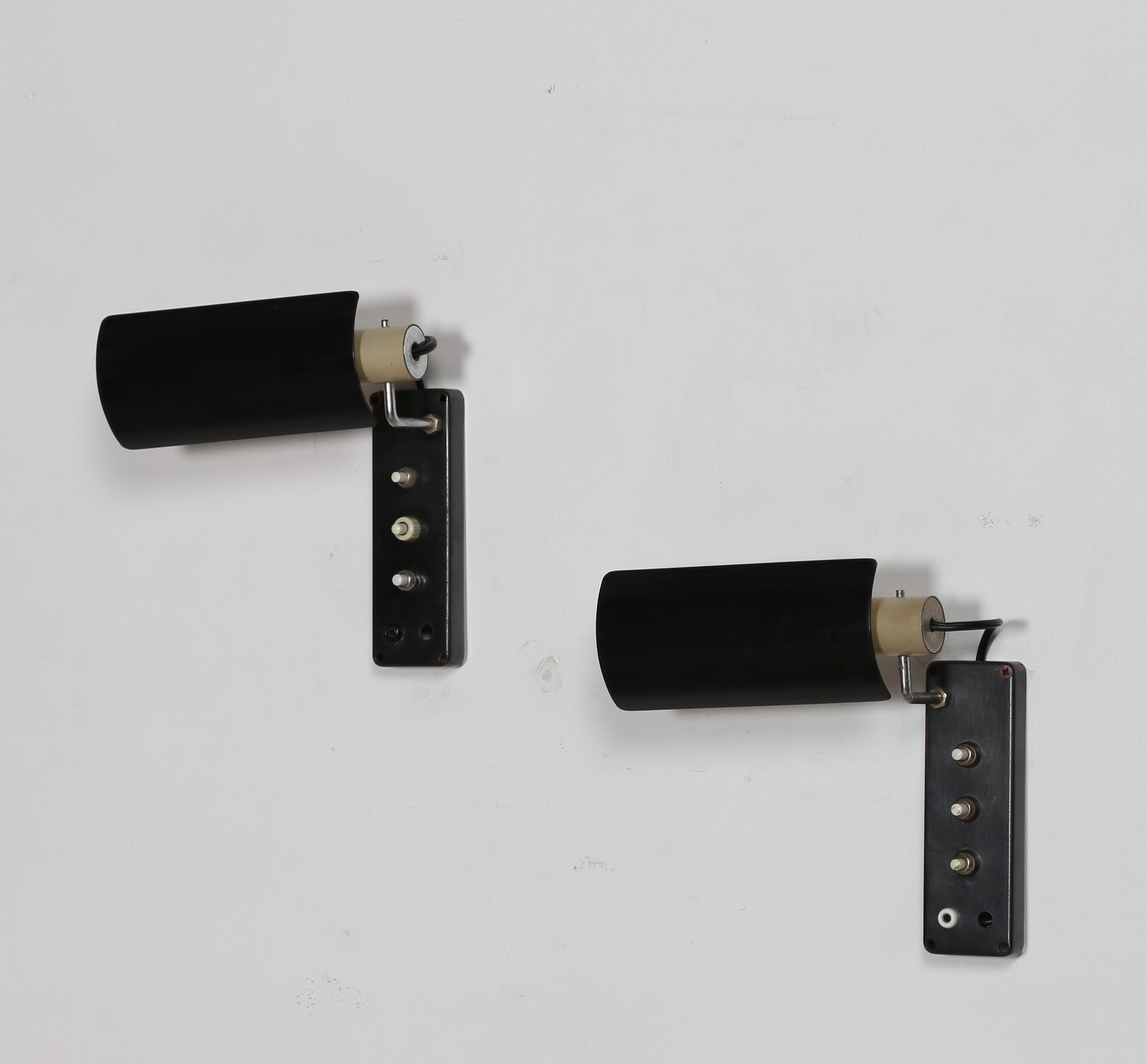 SARFATTI GINO (1912 - 1985) Coppia di lampade da parete in metallo laccato, mod. 222, per Arteluce 1950 . . Cm 20,00 x 20,00 x 9,00.