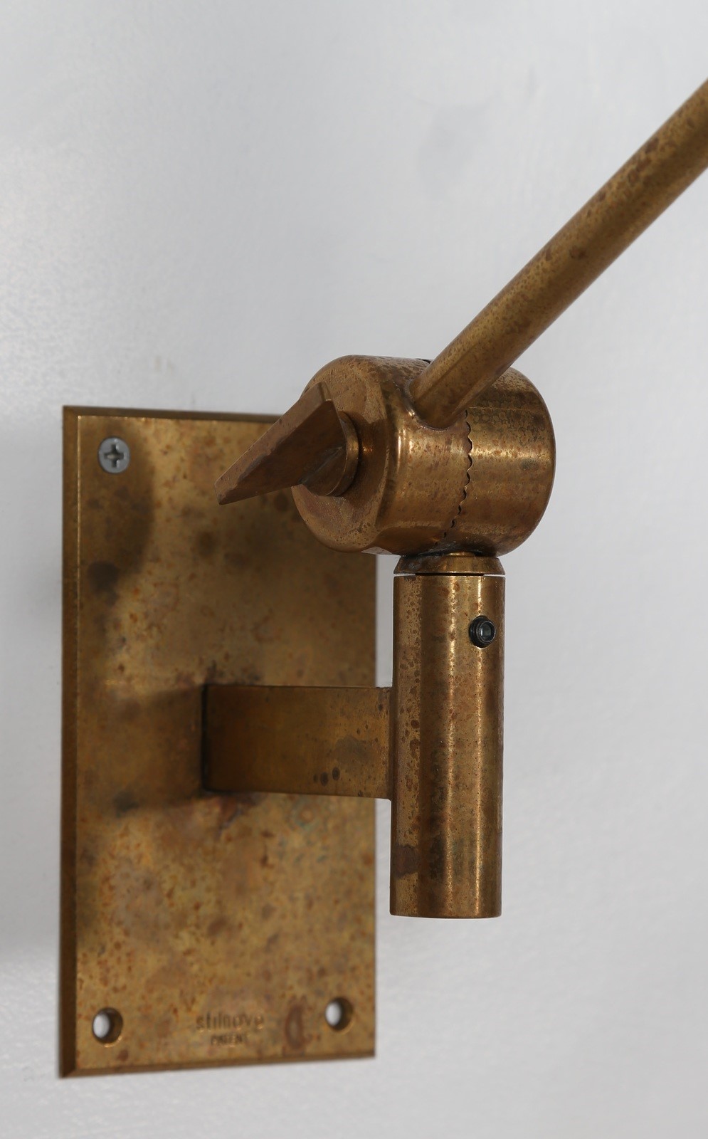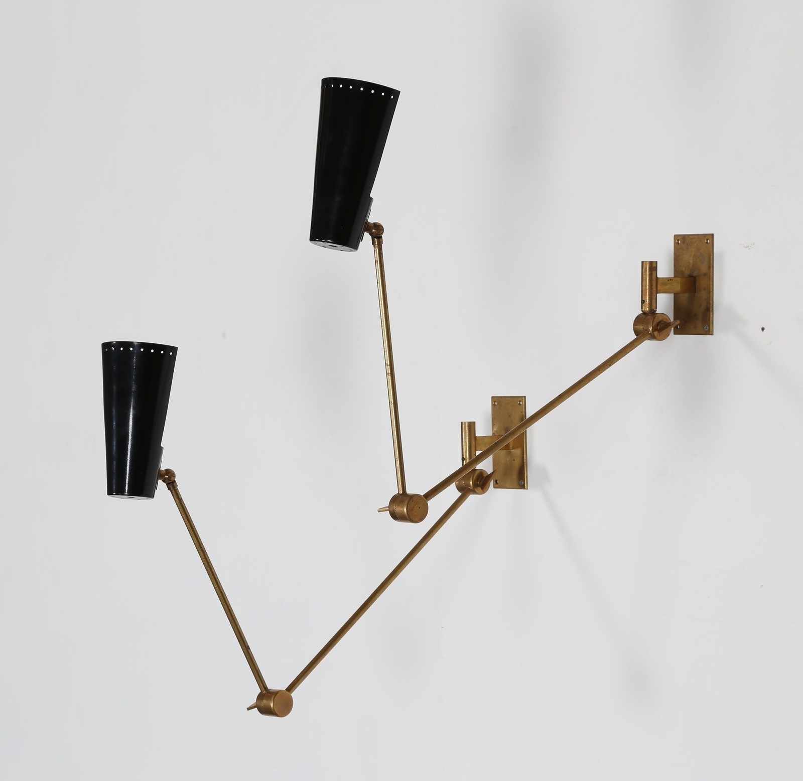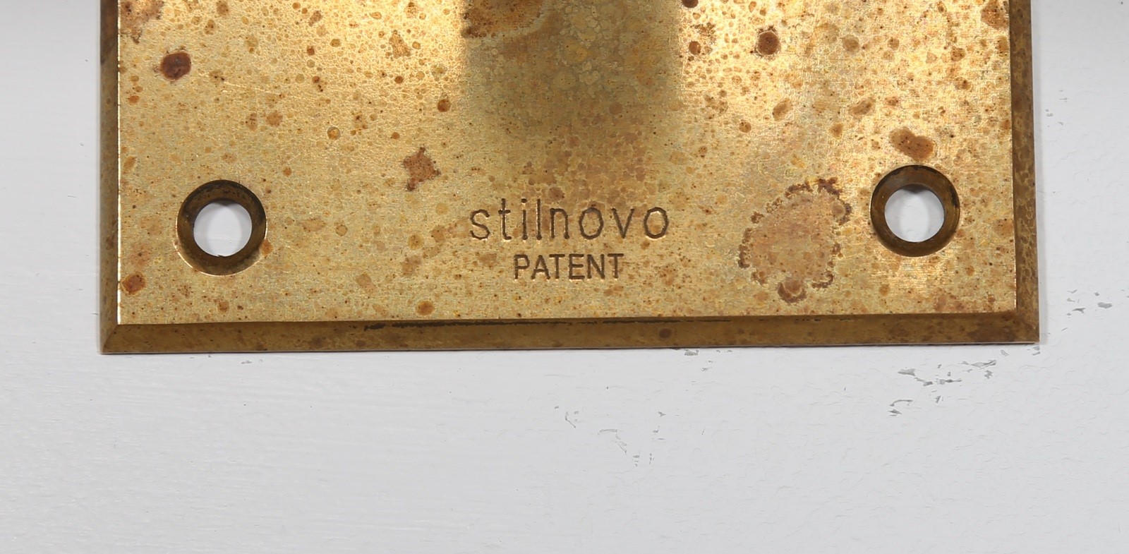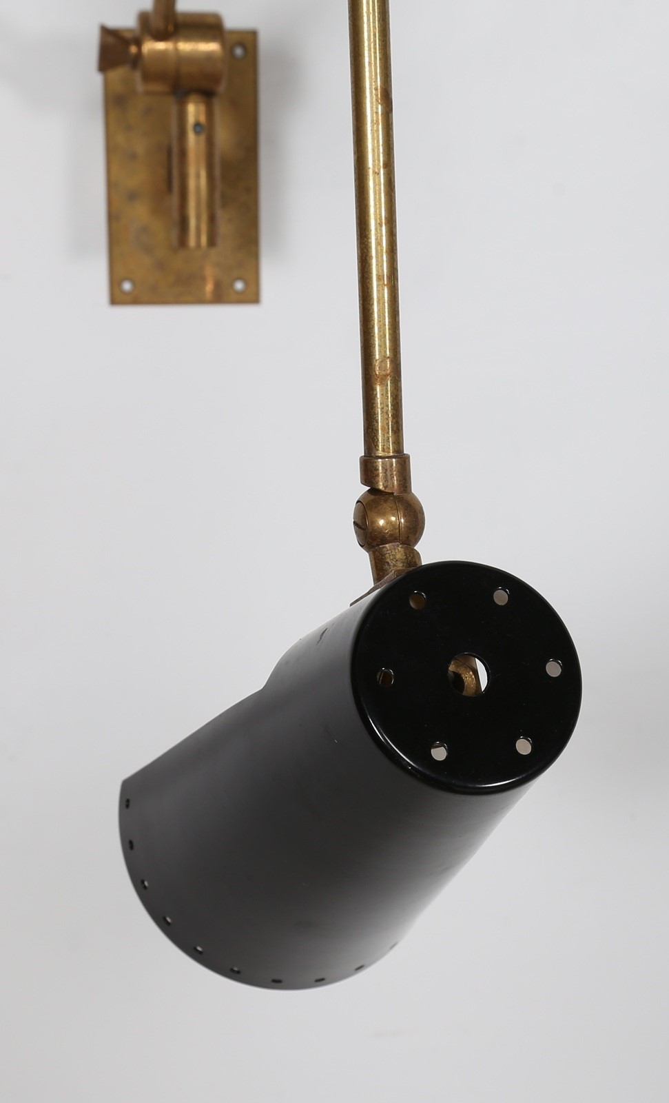 STILNOVO Coppia di lampade da parete in ottone e metallo laccato, anni 50. Marchio inciso. -. Cm 10,00 x 55,00 x 70,00.