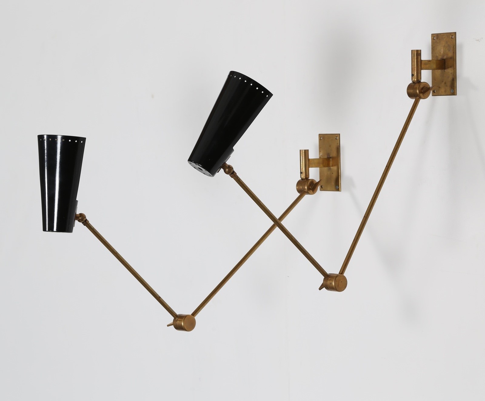 Lot 164 | STILNOVO Coppia di lampade da parete in ottone e metallo laccato, anni 50....